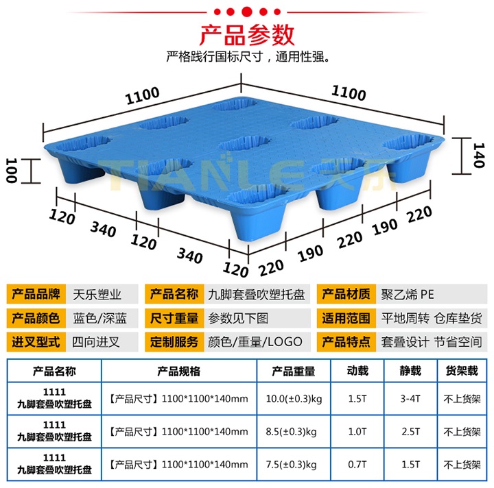 發展中的天樂總是給您驚喜不斷,5月份,公司新增設備——吹塑機老三,又推出網紅輕型九腳吹塑托盤(1.2*1m;1.1*1.1m兩款尺寸),7月初,天樂公司再次推出1*0.8m九腳平板托盤以及水果蔬菜運輸存儲好幫手——果蔬筐,果蔬筐1萬個訂單正在井然有序生產,歡迎新老客戶、合作伙伴、業界同仁咨詢下單。